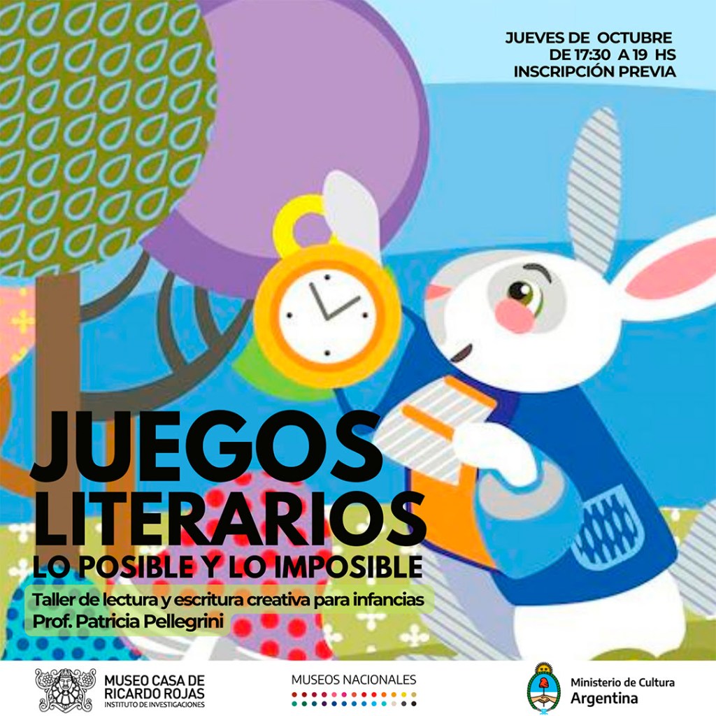 El taller comienza el primer jueves de octubre del 2022. El mismo transcurrirá los jueves, sólo durante este mes que se aproxima, un encuentro por vez, todos los jueves del mes 10 de 17:30 horas a 19:00 horas. Lo dicta Patricia Pellegrini en el Museo Ricardo Rojas de la calle Charcas 2837 Caba. Lo lúdico estará muy presente en este taller gratuito en la medida de lo posible mágico y lo imposible creacionista. Deberán llenar el Formulario de Inscripción aquí: Docs form ,