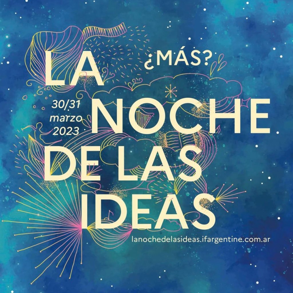 La noche de las ideas 2023 es un encuentro en varias sedes pero con centro en el Centro Cultural Recoleta para discutir los principales temas que propone el ideario de Buenos Aires Francia Buenos Aires, en este caso el slogan es Más? propuesto por el Instituto de Francia en Buenos Aires. Los temas que tratarán este año en la séptima edición serán El Ni una menos, los 40 años de la democracia, el desarrollo sustentable de la ciudad y asuntos «satélites». Habrá muchos protagonistas. Formarán parte artistas, psicólogos, sociólogos y arquitectos y muchos pensantes más. Este encuentro se llevará a cabo por la tarde mañana jueves 30 de marzo y pasado mañana viernes 31 de marzo en junin 1930 (Centro Cultural Recoleta) con la siguiente programación