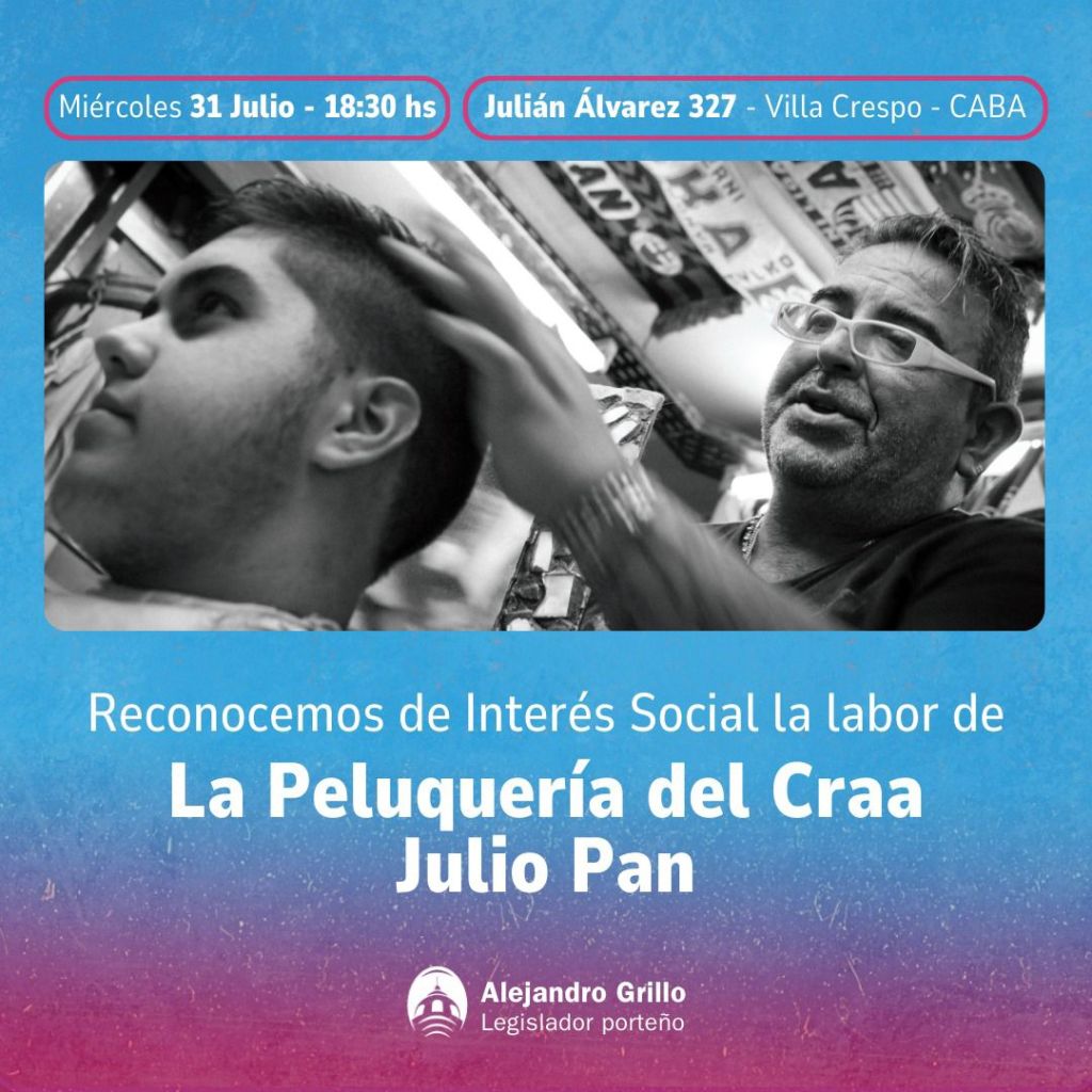 La legislatura porteña nombrará a la peluquería de Julio Pan el Craa, Peluquería de interés social