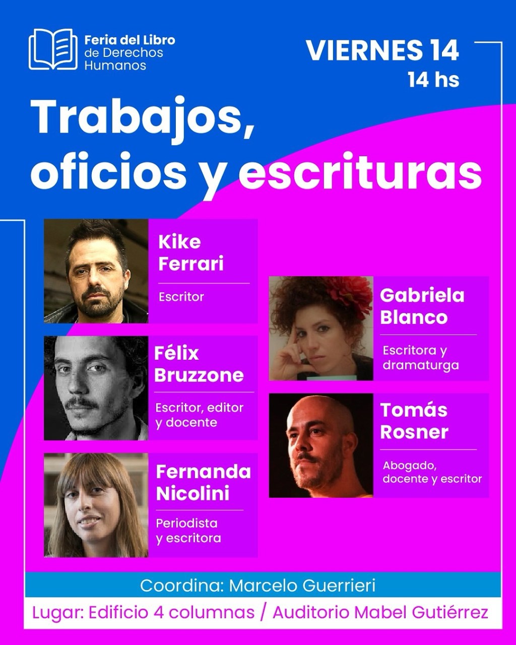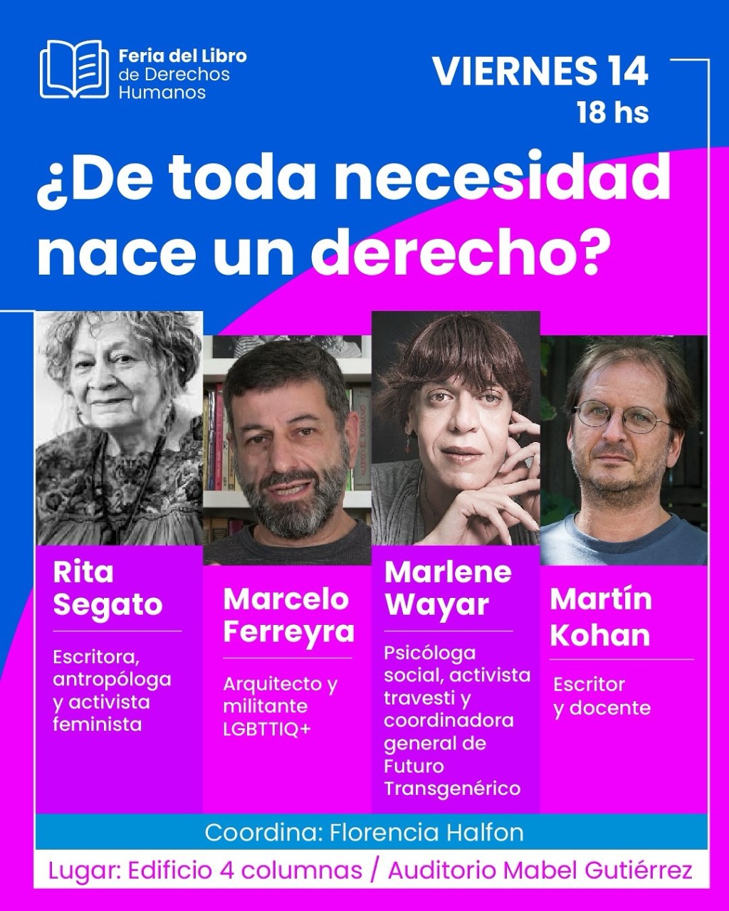 La esperada feria será el viernes que viene y sábado que viene, 14 y 15 de marzo, en la Ex Esma (espacio Memoria). Quien convoca a la misma pertenecen a los organismos de derechos humanos, se llama originalmente derechos en letras. Durante los dos días va a hablarse de derechos en el terreno cultural, social y político, van a hacerse charlas donde estén todos invitados y además habrá stands de libros de 60 editoriales de distintos estilos, que estarán presentes. La feria es considerada una oportunidad para aprender y encontrarse entre la gente, va a ser en Av. del Libertador 8151 (Ex Esma) Viernes de 10 a 18 y Sábado de 10 a 19, entrada gratuita.