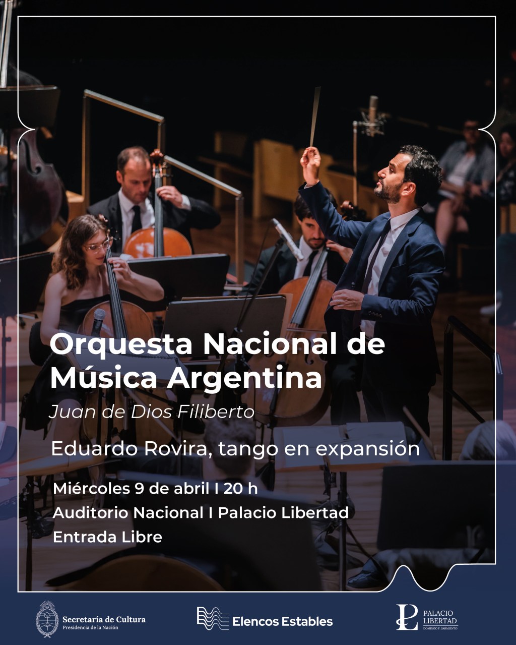 Este concierto será el tercero o cuarto desde marzo en el Auditorio Nacional y todas las veces se llenó por completo. Está organizado por Elencos Estables de Presidencia de la Nación. Tendrá lugar un espectáculo de la Orquesta importantísima conjugada con una puesta en valor de la obra de Eduardo Rovira por Roberto Rovira, hijo de Eduardo, y Ariel Pirotti, que también aportó sobre su legado. El recital de la Orquesta tendrá mucho tango contemporáneo de Eduardo. Estará el director invitado Ezequiel Silberstein. Las entradas se retiran por la página del centro cultural tres días antes y el mismo día del concierto a partir de las 14 por mostrador.