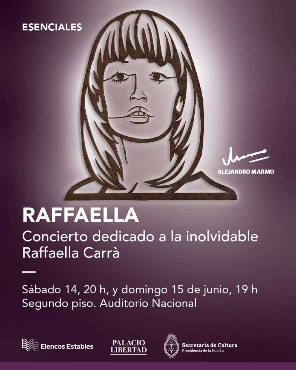 Serán en homenaje a la gran diva italiana, y también bailarina. Harán temas que ella interpretó. Los días que será el show es el sábado a las 20 y el domingo a las 19, las entradas se retiran en el Palacio Libertad, Sarmiento 151, con anticipación o por la web. Tocará la Orquesta Nacional de Música Argentina y varios cantantes invitados. El recital se llama «Raffaella» y es gratuito.