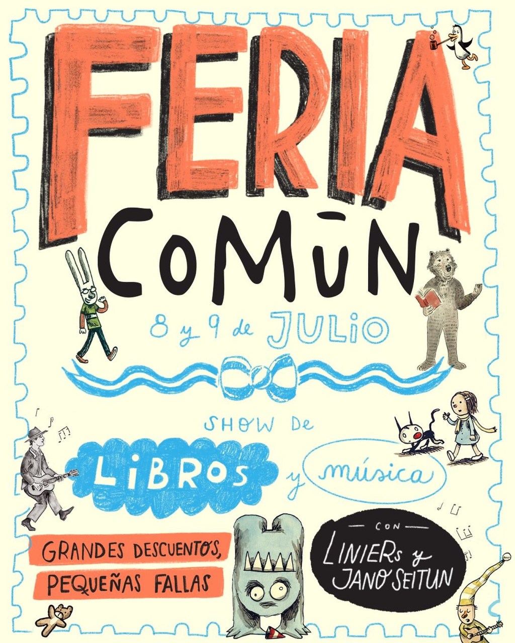 La Feria Común será el martes 8 y el miércoles 9 -feriado-, en Recoleta, como lugar de referencia, en Unitivo espacio creativo, Libertad 1247, Caba. Como toda feria habrá libros con descuento, nuevo y fallados, a su vez habrá combos especiales, juegos, bolsas, y muchos regalitos. El martes firmará en la Feria el querido Liniers, y el miércoles firma y canta canciones Jano Seitun. Los horarios de la feria son de 17 a 20 el martes, y de 10 a 13 el miércoles. Actividad gratuita.