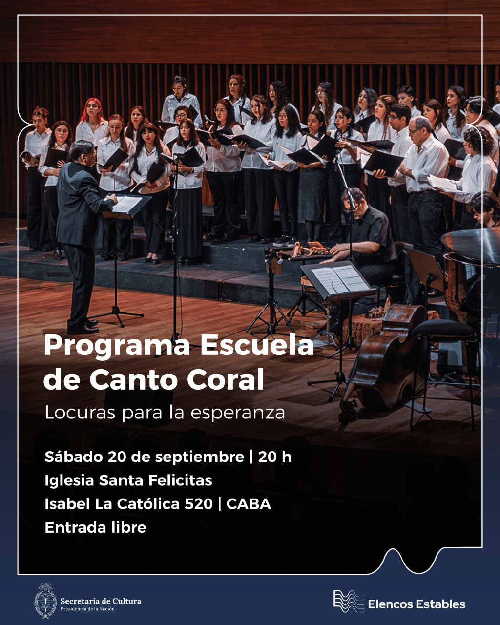 Será mañana gratis en la Iglesia Santa Felicitas, Isabel La Católica 520, Barracas, Caba. El concierto que comenzará a las 20 horas, es gratuito. A su vez, está integrado por un coro de niños y jóvenes, de Elencos Estables, que es la entidad que agrupa este tipo de conjuntos celestiales. Cantarán temas de un repertorio bajo la dirección de José María Sciutto, inspirados en la escuela de canto coral que se formó; los temas serán de Mozart, y también de Fito Páez -el genio de Circo Beat-, y harán también una canción de María Elena Walsh, la cantora de canciones para chicos en la década de los 90.