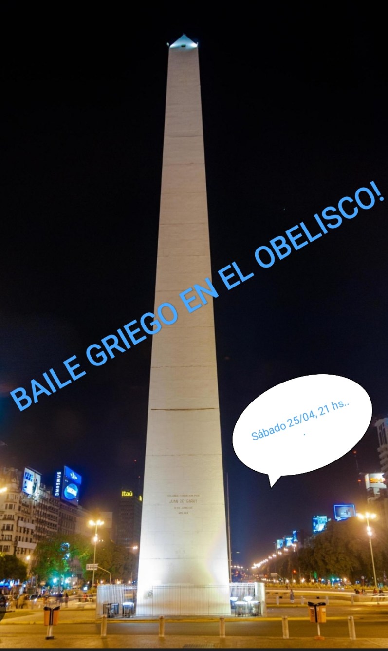 La fiesta será a las 21 horas, hoy en el Obelisco, totalmente gratuita, bailarán nada menos que danzas de Grecia, el país del sureste europeo, por primera vez en Argentina, a su vez estarán algunas calles de la ciudad cortadas por el evento de Colapinto y la noche de la Mega en la Feria del Libro, Los Tipitos y Leo García Gratis, también en la feria en la noche feriante desde las 20.
